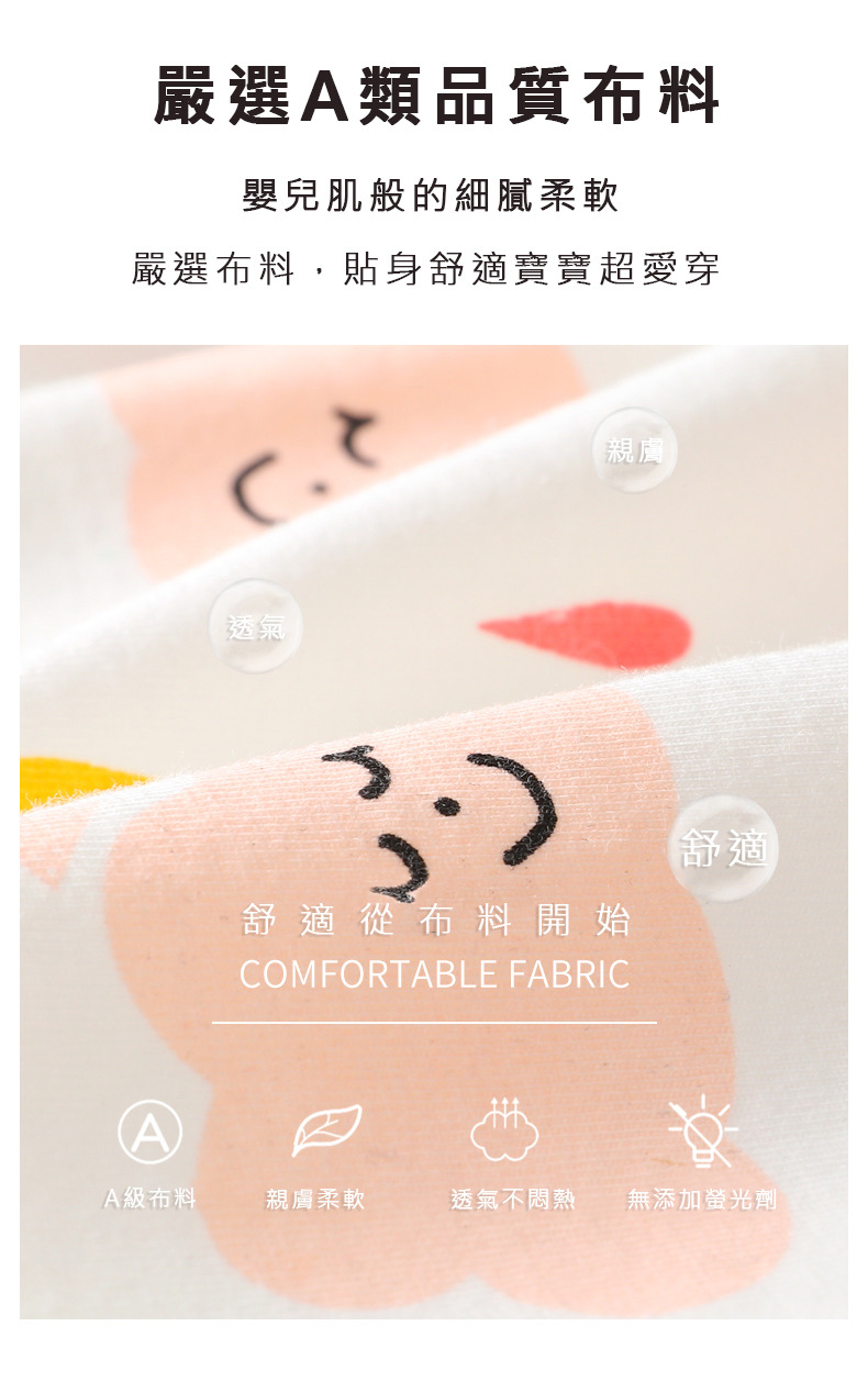 親膚柔軟不勒肚肚,A級棉呵護寶寶,可水洗不易起球